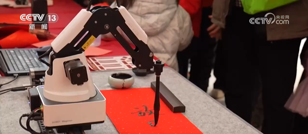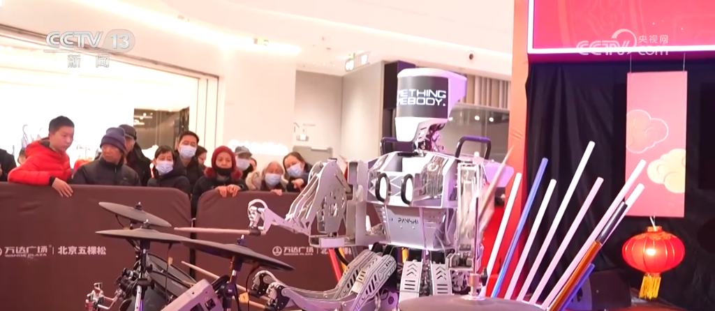 在科技庙会现场,由机器人组成的乐队正灵活地弹奏着手中的乐器,吸引商场内的大批游客驻足观看。此外,科技庙会还与传统民俗结合,推出了机器人写春联、AI兔爷话年俗、机器人京剧及变脸表演等。庙会充分利用商场的各层空间,结合区域特色打造了丰富的机器人应用场景。机器人迎宾、机器人取货、可爱的卡通机器狗表演,餐饮区还设置了炸薯条机器人、冰淇淋机器人等。