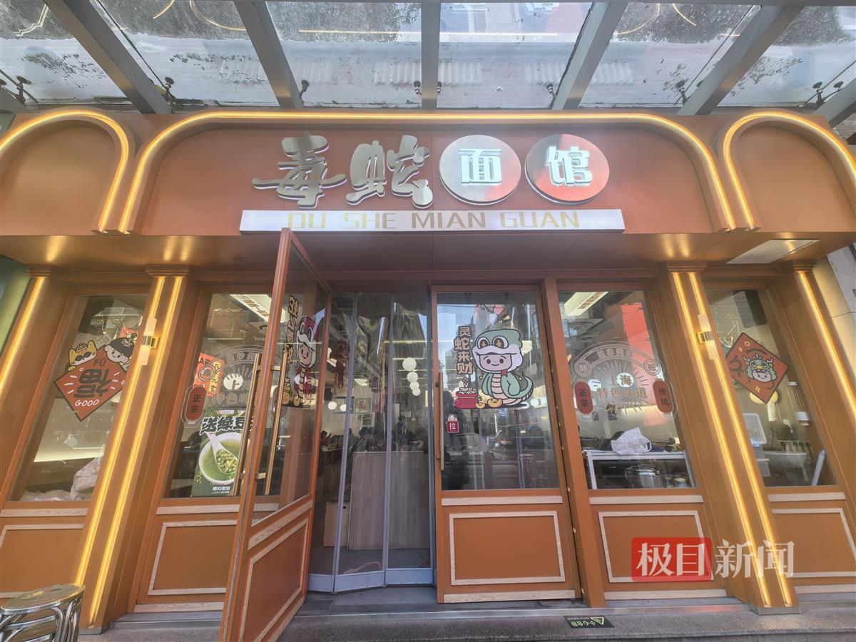 已到农历蛇年新年,一家名为“毒蛇面馆”的连锁面店登上某点评网站“上海面馆打卡人气榜”第一名。有网友对面馆“毒蛇”一名有些好奇。2月7日,该品牌一家分店店长告诉记者,这一命名是因为老板和老板娘的生肖都属蛇,且与“独舌”同音,意在打造独特的品牌。
