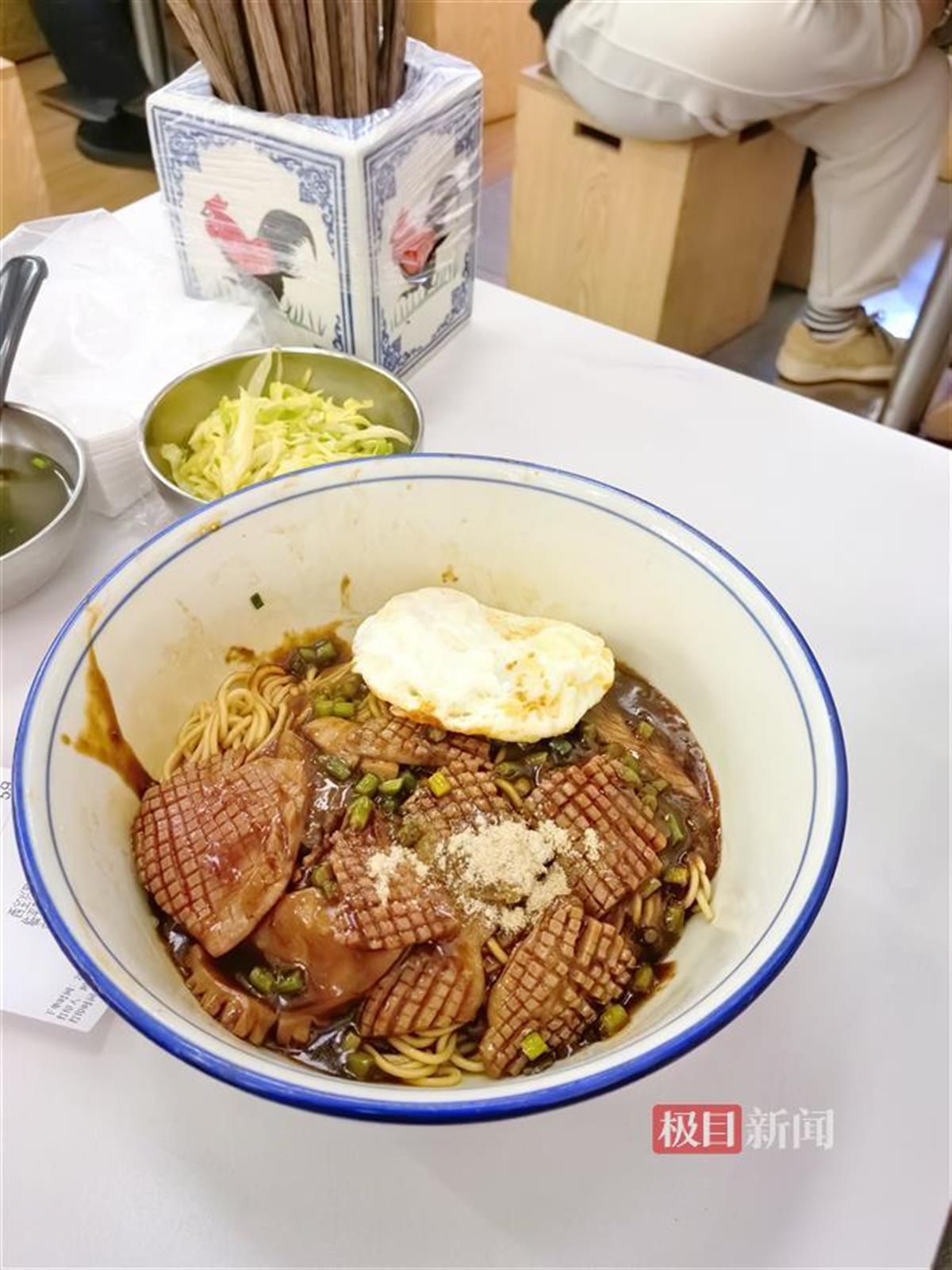 一名食客称,自己听说了这家网红面馆,特意赶来品尝上海本帮面。另有一名上海市民称,自己在静安寺附近逛街,看到这家店人比较多,便走了进来。进店前,她注意到“毒蛇”一名,但并不影响胃口。她点了一份腰花面和一份炸猪排后称,面的味道还不错。