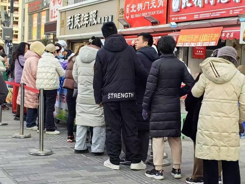 元宵佳节来临前夕,一些老字号元宵售卖点前已经开始排起了队,店铺门口络绎不绝的购买队伍已成为街前一景。