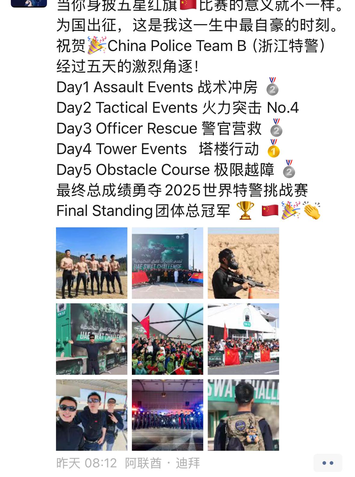 夺冠后,参赛的绍兴特警队员发了条朋友圈 受访者供图