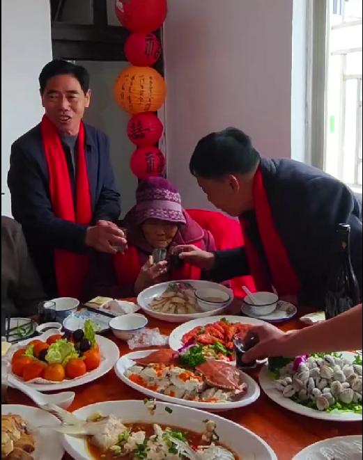 临近中午,晚辈们陆续到场,老人家也没闲着,虽然已是100岁高龄,但看起来身体和精神状态都不错,不时有后辈来合照,她都笑呵呵的。饭桌上,潘菊妹坐在桌子中央,还为晚辈们一一送去祝福,并准备了红包。