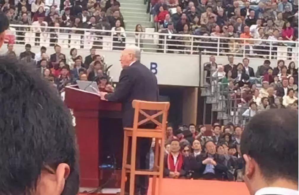 在上海交通大学120周年校庆时,90多岁的黄旭华演讲时,推开了为他准备的椅子,全程站着完成演讲,这让在场的所有人润湿双眼。