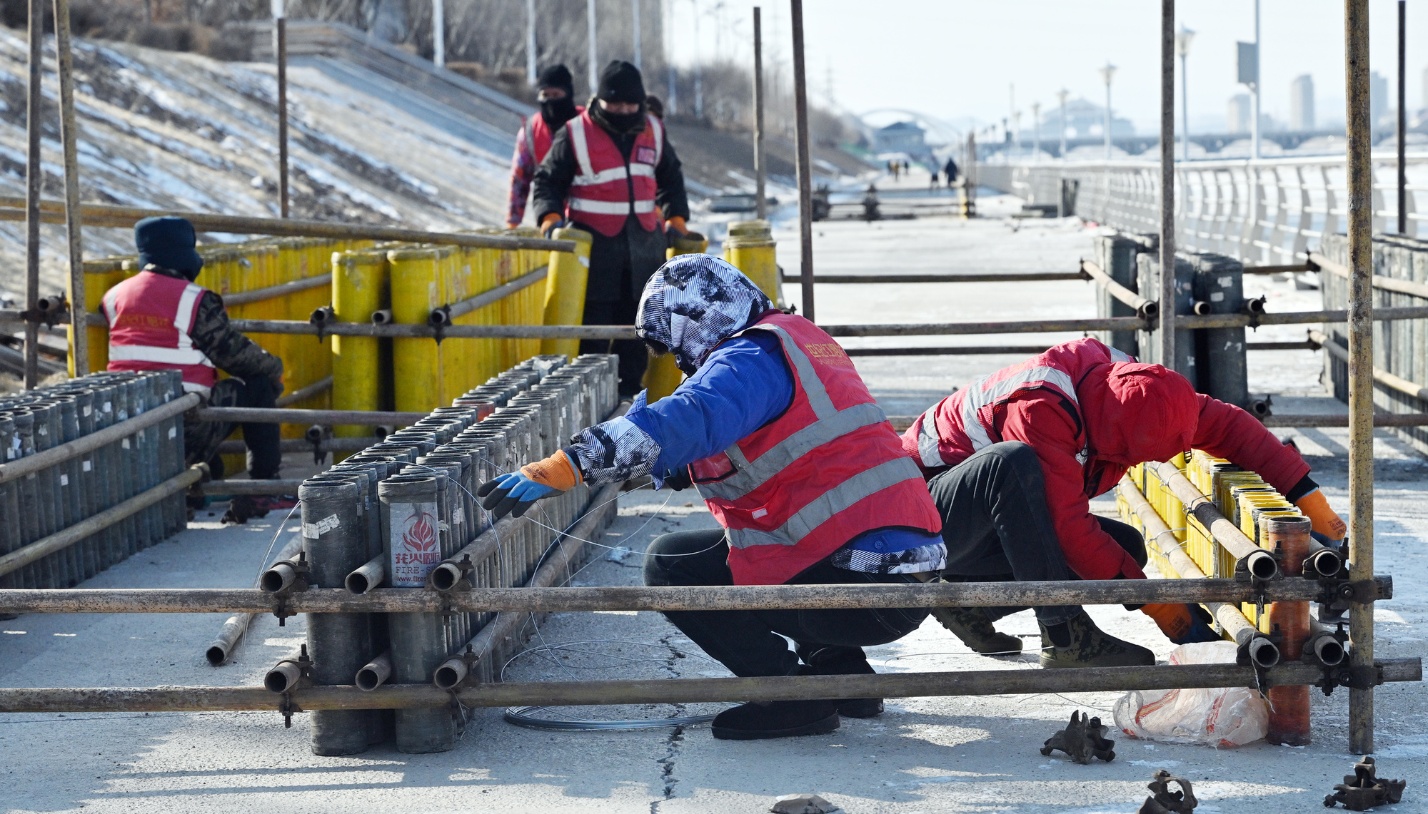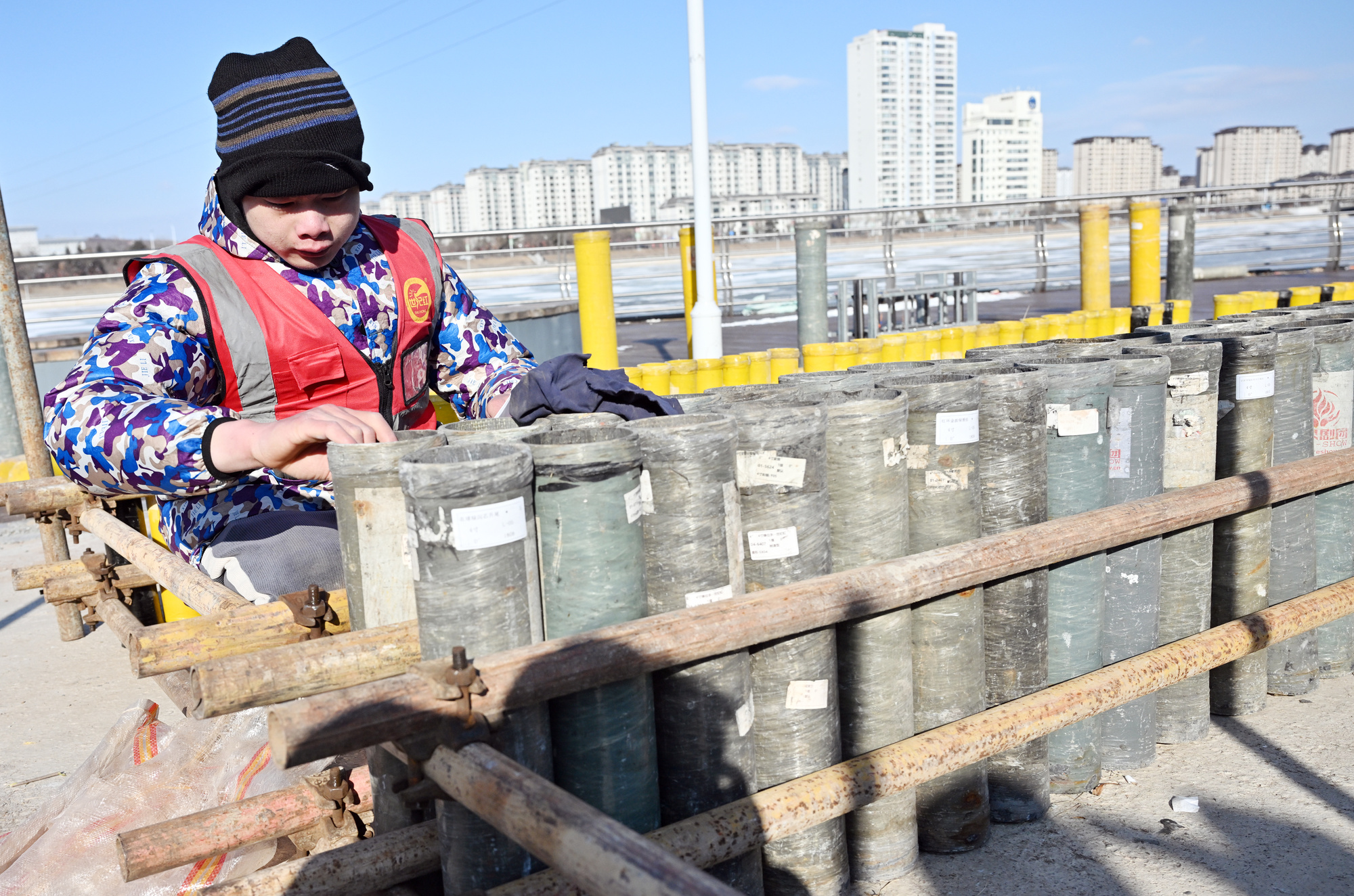 眼下,来自浏阳世纪红烟花制造有限公司的数十名工人正在晚会现场工作区忙碌,有的搬运、整理运抵现场的一箱箱烟花,有的埋头搭建中低空造型的焰火发射基座,有的搭设高空礼花弹的发射架。