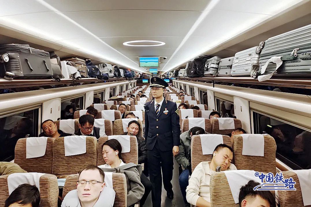 0时55分,G4554次列车满载旅客出发。针对夜间高铁的运行特点,车上落实“不打扰”服务模式。乘务人员在车厢内做到走路轻、说话轻、动作轻,尽量为旅客创造舒适的“轻睡”环境,并为到站旅客做好提醒、叫醒服务。