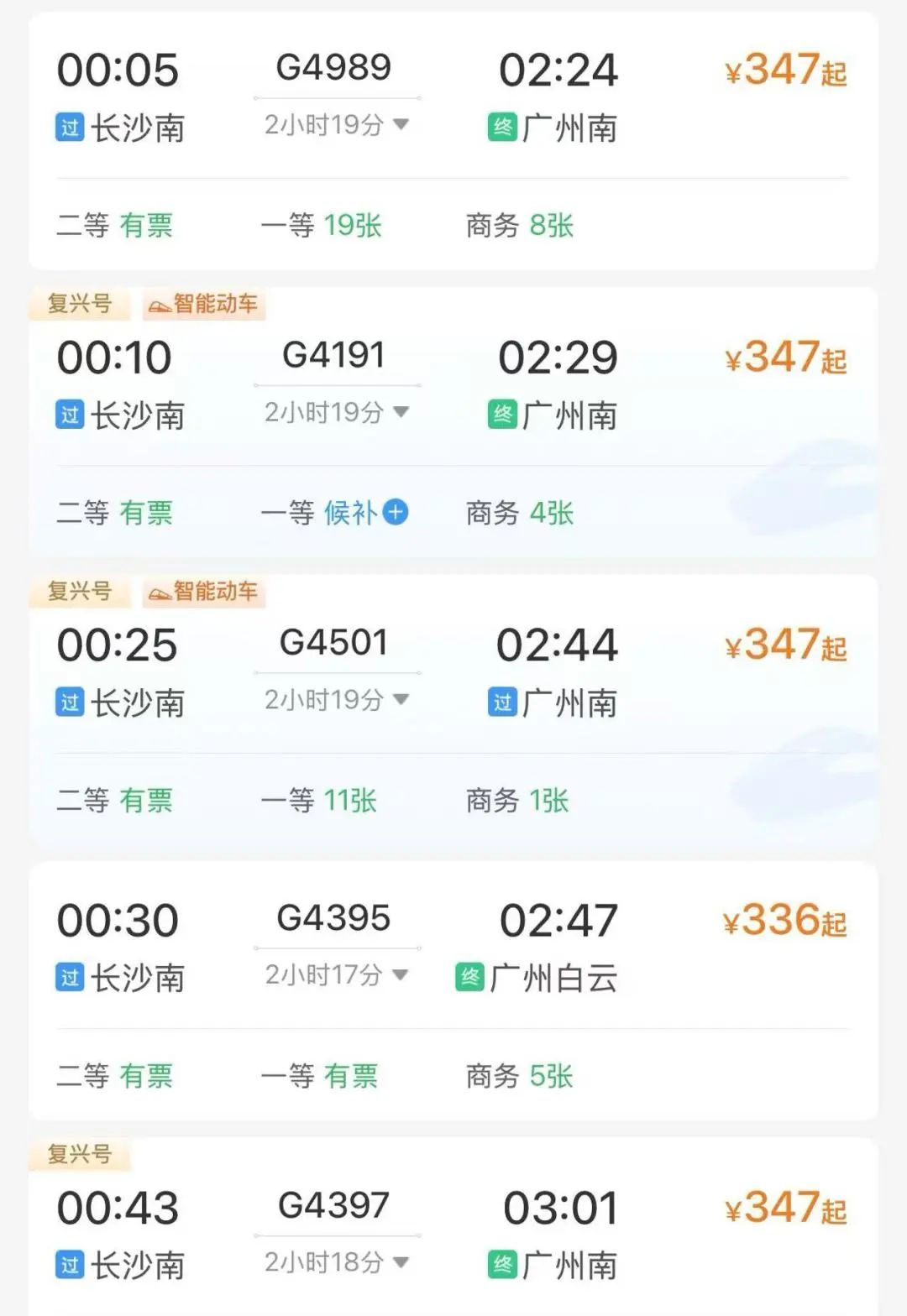 加开夜间高铁