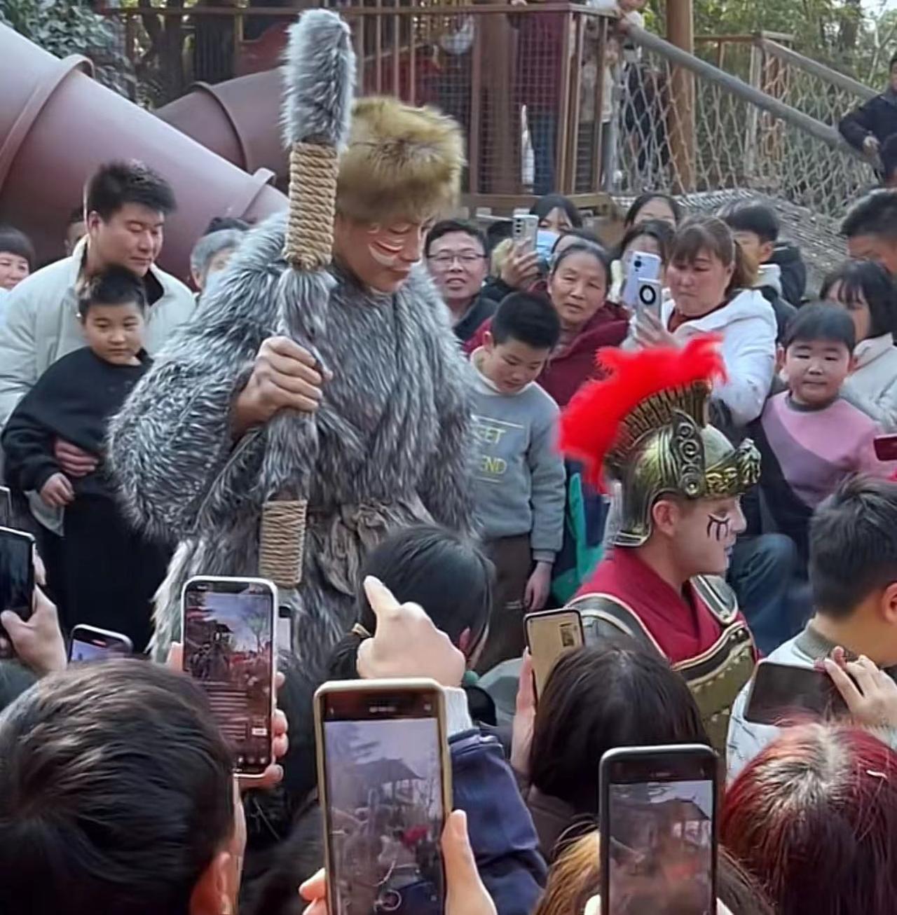“我们对兄弟俩的角色定位进行了更改,让阿卜杜卡哈尔·赛麦提身着特制的皮草服装、拄着拐杖,将他设计成古代游牧民族的战士,与宋代中原文化形成对比,增加角色的神秘感和异域风情。在演出内容上,兄弟俩也主要以与游客互动为主。”王娟说,由于阿卜杜卡哈尔·赛麦提的身高、体型,景区还特意安排了10名“小矮人”在他身边跟着,为其高大威猛的形象增添了强烈的视觉冲击力。