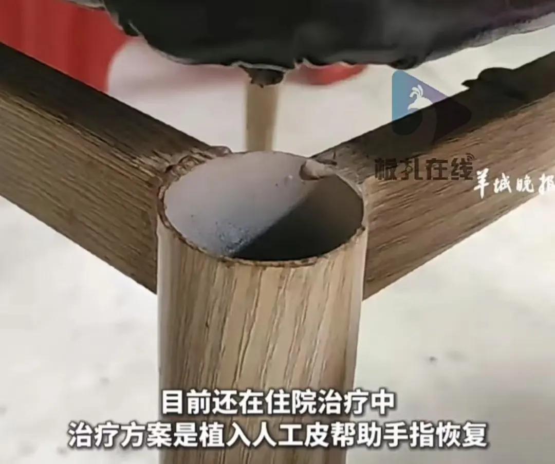 不幸被椅子的空心钢管夹断手指