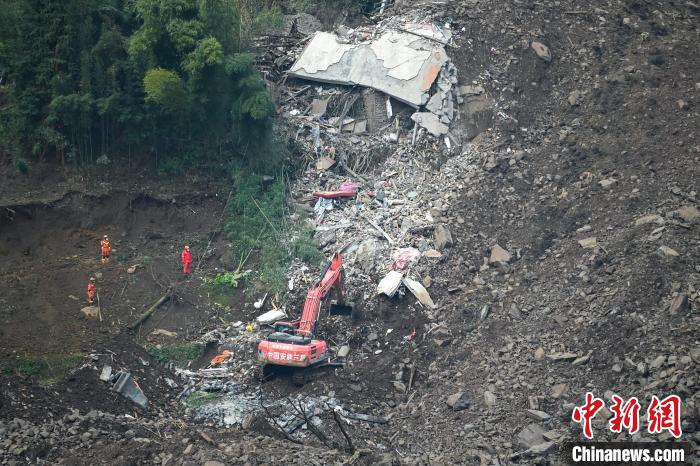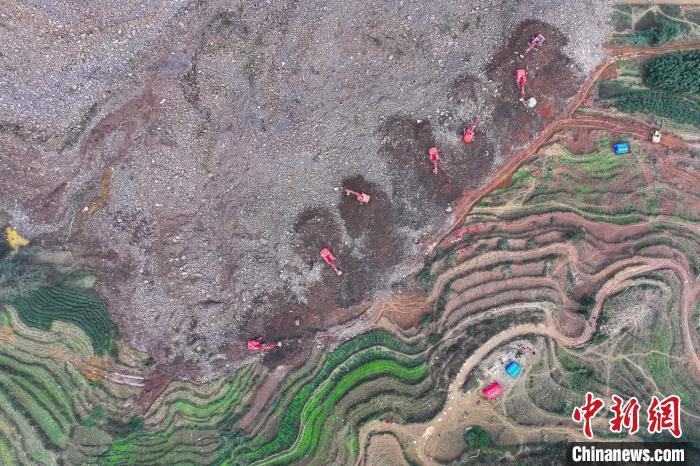 2月11日,航拍四川筠连县山体滑坡搜救现场。当天,人员搜救、应急调查、监测预警、隐患排查等工作仍在持续进行。(无人机照片) 中新社 记者 刘忠俊 摄