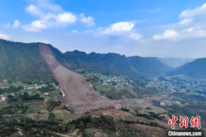 2月11日,航拍四川筠连县山体滑坡灾害全景。 (无人机照片) 中新社 记者 刘忠俊 摄
