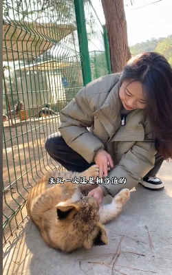 2025年春节期间,陕西西安未央湖动物园推出一款价值268元的服务套餐,其中包含“撸小狮子”服务——在专业饲养员的监护下,游客可以与一只一个多月大的小狮子零距离接触10分钟,广受游客追捧。