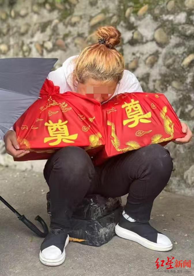 ▲郝女士抱着老公、儿子的骨灰痛哭