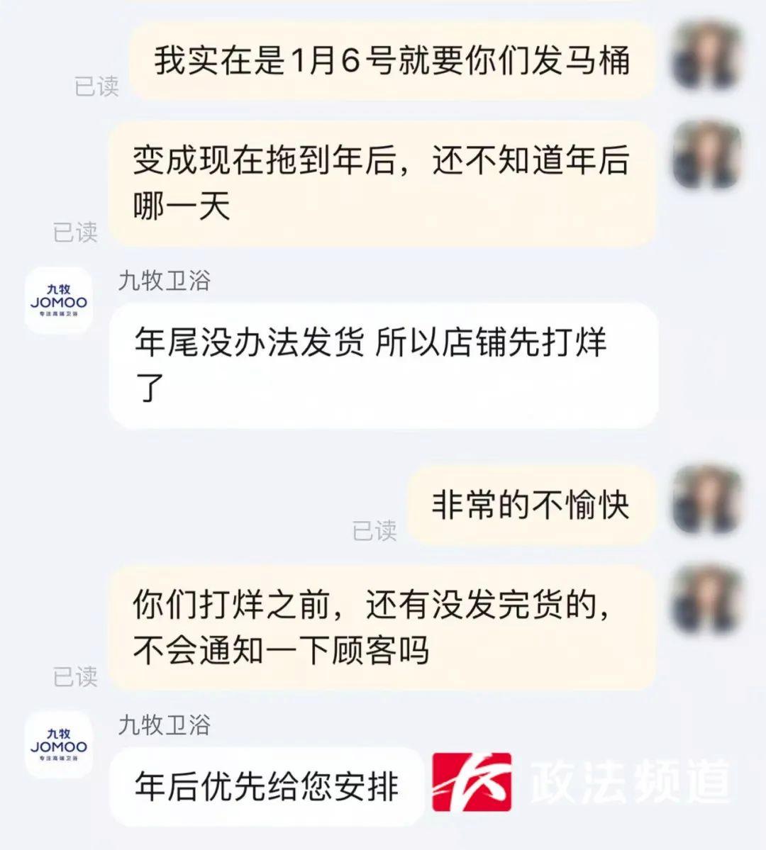 肖女士告诉记者,发现网店关闭后,她第一时间联系淘宝客服,在淘宝客服介入下,商家对她进行了回复。“找到商家 ,商家又主动回复我,说年后初八给我发货,那我也信了,等到初八了还是没有,找淘宝又要我等90天。最主要是我现在住不进来 ,我已经装修这么久了,到现在还在外面租房子住。”肖女士表示。