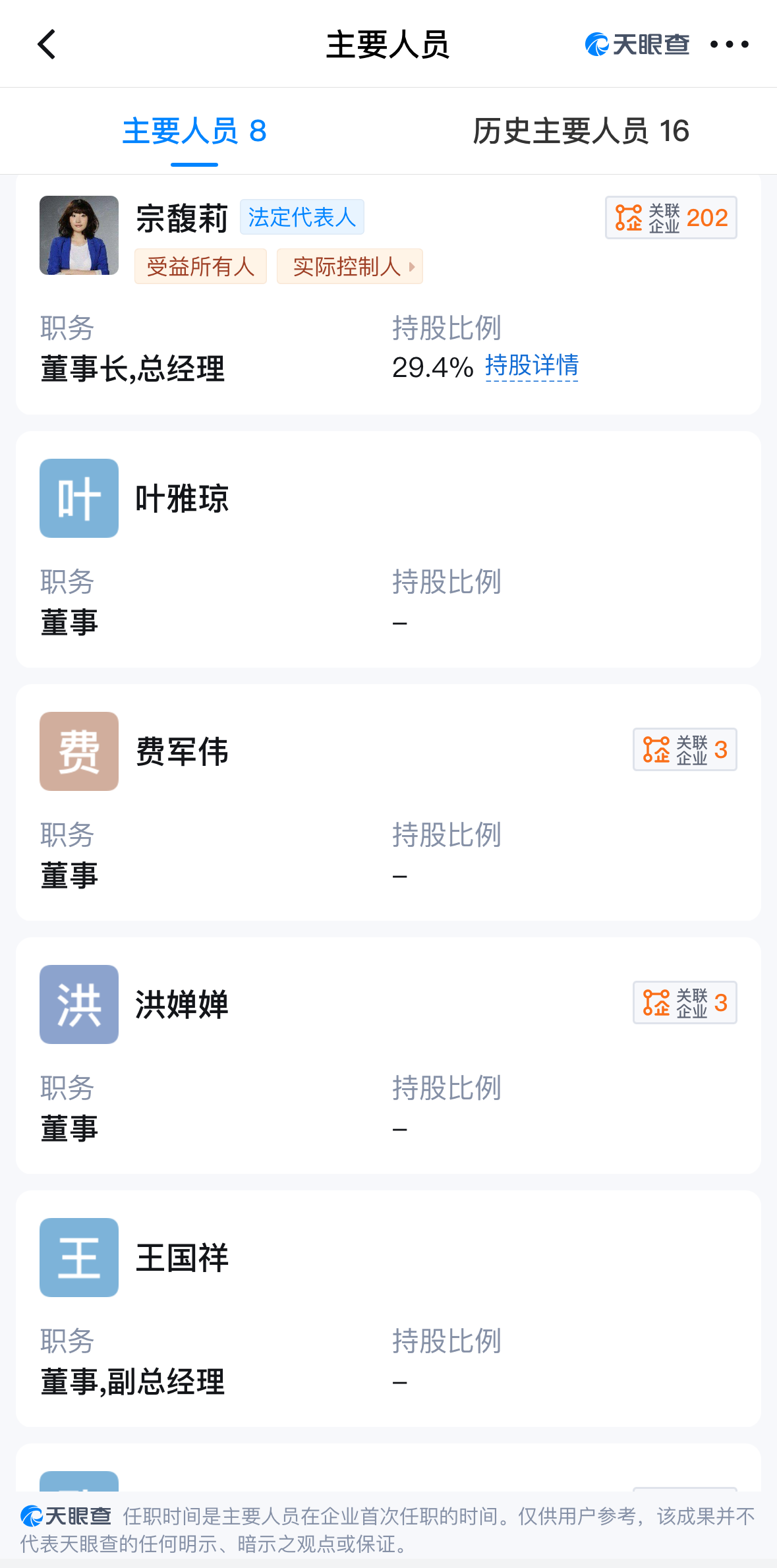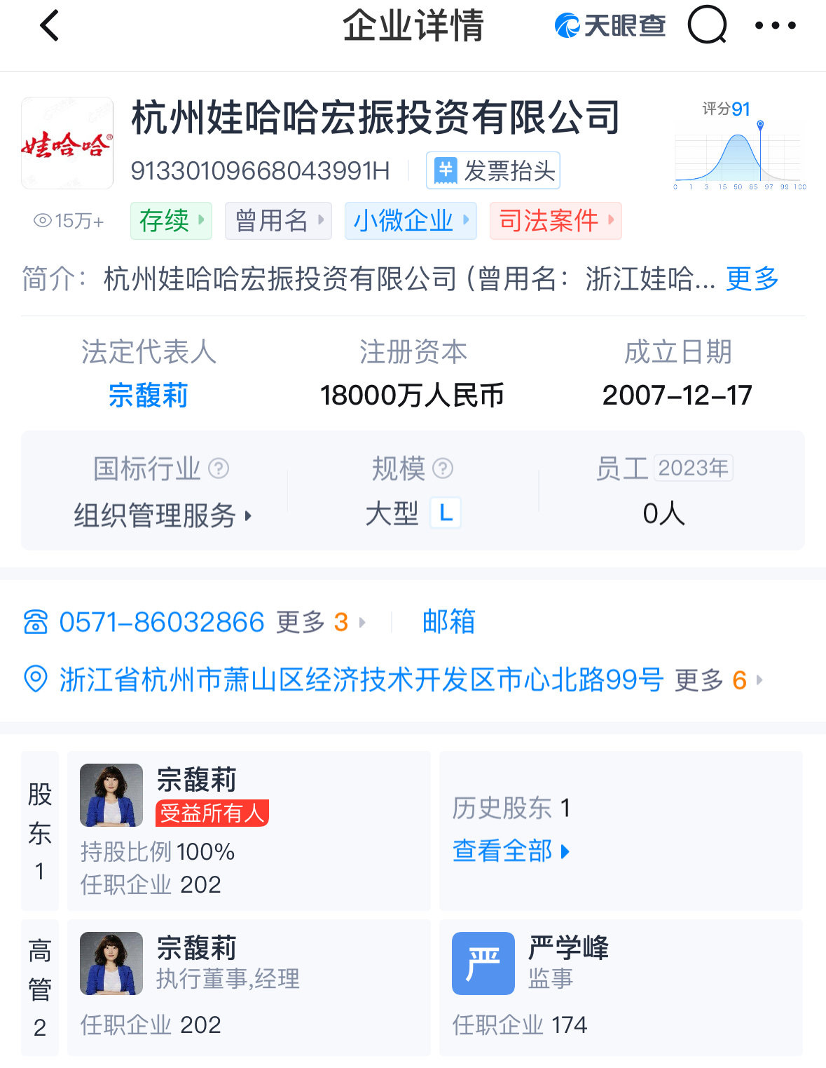 这也意味着,宗馥莉已经成为杭州娃哈哈食品有限公司的实际控制人。