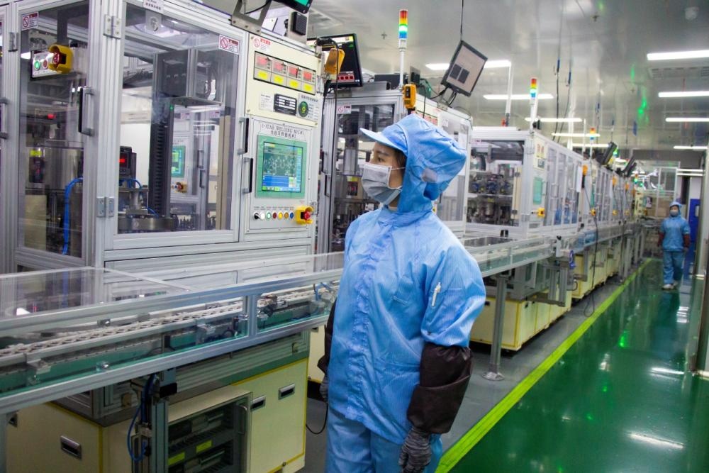 宜春国轩电池有限公司生产车间磷酸铁锂电池生产线正在紧张生产