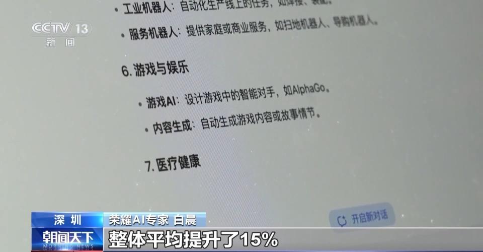 荣耀AI专家 白晨:接入DeepSeek以后,我们同比之前AI回答的准确率上,整体平均提升了15%。在一些特定的案例下,提升幅度更大,有85%准确率的提升。