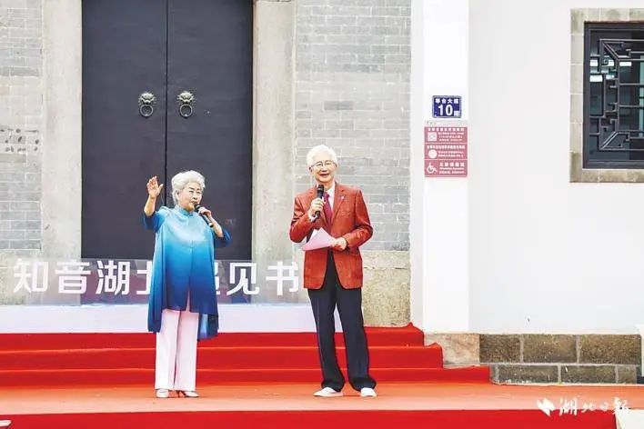 《话说长江》主持人陈铎(右)、虹云(左)在读书会分享与长江相遇的故事。(湖北日报通讯员陈明摄)