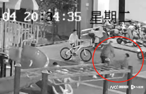 根据监控录像,当日20时34分许,小区的游乐设施边上有众多小孩玩耍,小华正常行走在小区的步道上,一男子牵着三只犬只向其走来。突然,其中一只狗攻击他,小华发出两声喊叫便摔倒坐在地上,而后男子的手部有教训涉事犬只的动作。小华起身后远离三只被牵引绳牵住的犬只,男子靠向前查看。至20时35分,男子牵着犬只离开了现场。