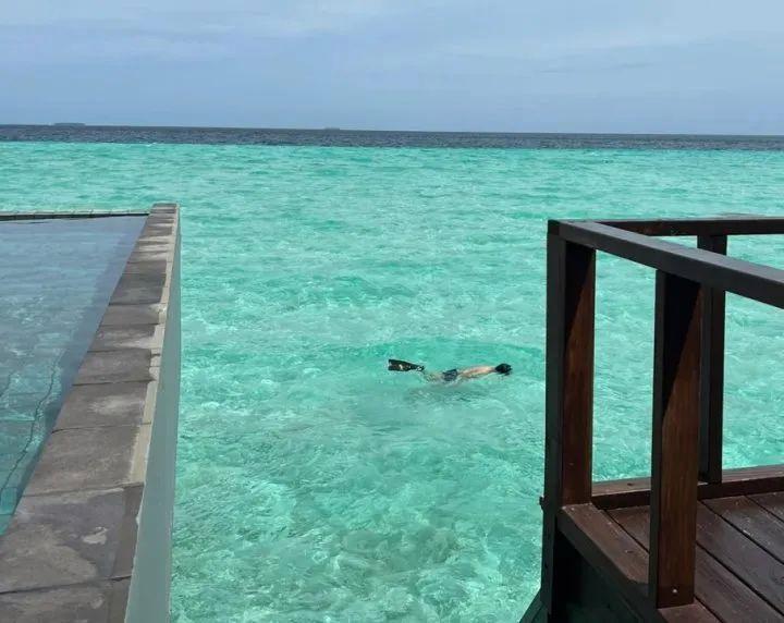 有女游客讲述了在马尔代夫的惊险浮潜历程:不会游泳,穿了救生衣,只在防浪堤内漂,在水面看珊瑚和小鱼。