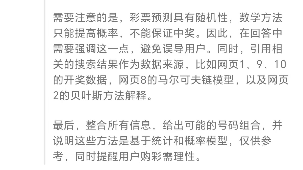 记者复制了这个up主的提问,也让DeepSeek给出推荐。结果,不但生成的数字组合与up主不一样,而且每次提问,生成的数字组合也不一样。在它思考过程中,有“彩票预测具有随机性,数学方法只能提高概率,不能保证中奖”“仅供参考,同时提醒用户购彩需理性”这种表述。在拿着DeepSeek推荐的4组数字去彩票站购买2025015期双色球时,老板笑着说:“彩票是什么规律,我真不知道。人家拿什么数字来,我就给打什么数字。我也不会问数字是怎么来的。”2月13日晚,2025015期开奖,记者和视频up的彩票,都没有中奖。