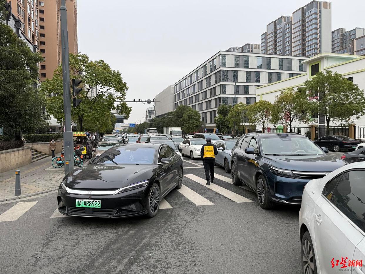 记者在现场注意到,由于该院区排队情况时常发生,排队停车的车辆、代停车的人员、横穿马路的人员……复杂的交通,让该区域在过了早高峰后,仍然处于较堵塞的状态。
