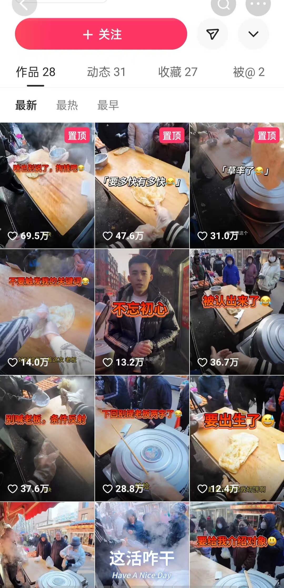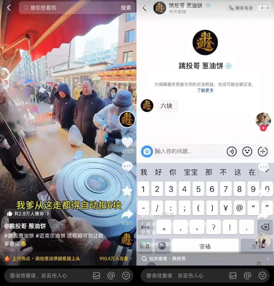 “跳投哥”一夜爆红,从“跳投哥”发布的内容来看,他不仅是一个创业多年的摆摊小哥,研发了无油饼、葱香饼、黄金烤饼等产品,还颇有流量意识,4年前就开始在抖音、视频号等平台上传视频,并同步直播摆摊日常。