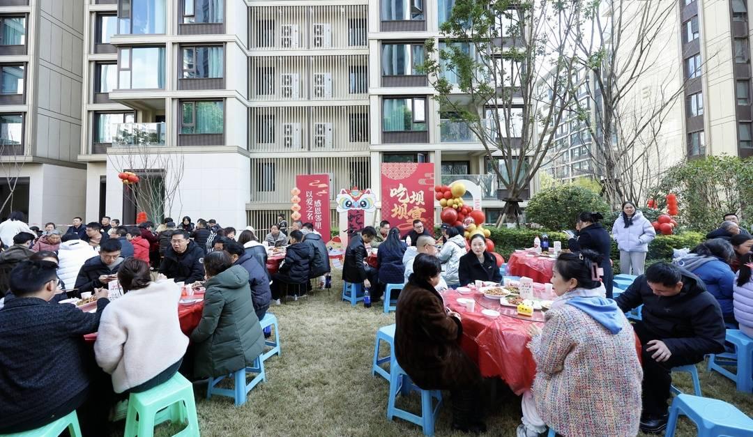 居民杨女士说:“一般印象中,乡下的老家才会有坝坝宴,没想到在成都这么现代化的都市中也能参加,非常新奇与开心。”杨女士介绍,邻居们都非常兴奋,自发用相机、无人机等设备来拍摄视频、照片等,记录下这美好的时刻,“也非常感谢物业,组织这么大的活动非常用心。”