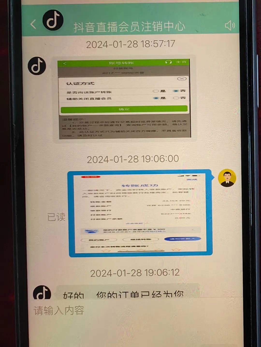 凡是自称客服人员,以"抖音电商直播会员"不取消会自动扣费、影响征信等理由,诱导您进行转账汇款操作的,均为诈骗行为。如接到自称客服来电声称订单存在问题,请立即挂断电话,并通过官方渠道核实订单信息。如需退款,务必通过原支付渠道进行退赔。
