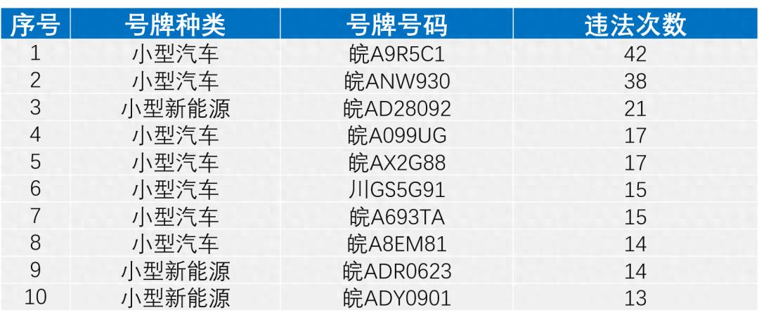 据合肥警方微信号2月16日消息,为有效预防和减少道路交通事故,营造平安畅通的道路交通环境,合肥市公安局交警支队现向社会公布全市2025年1月份终生禁驾人员名单、非现场处罚违法车辆TOP10等。