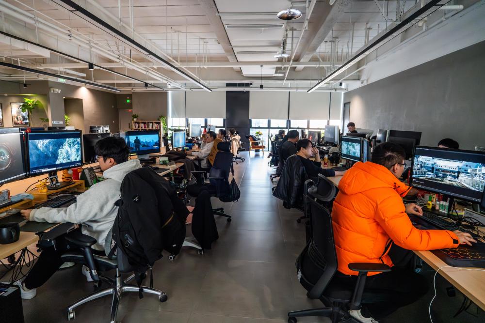 2月10日拍摄的《哪吒之魔童闹海》(《哪吒2》)视觉特效制作公司墨境天合成都数字图像科技有限公司的工作区。新华社记者 薛晨 摄