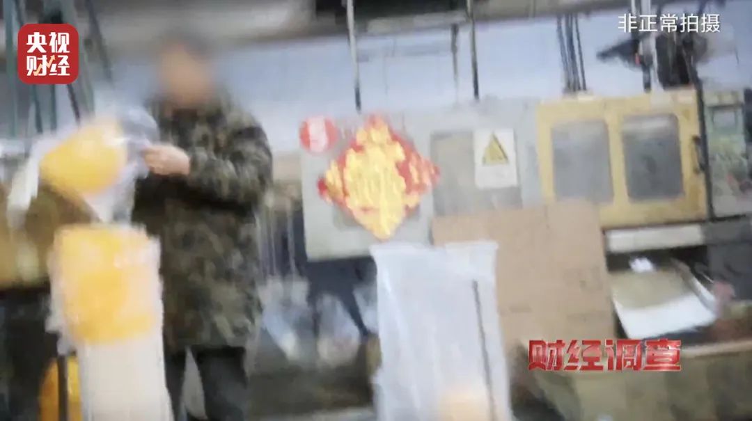 企业负责人告诉记者,这种5元的安全帽紫外线一照就老化发脆,主要就是用了回收料。