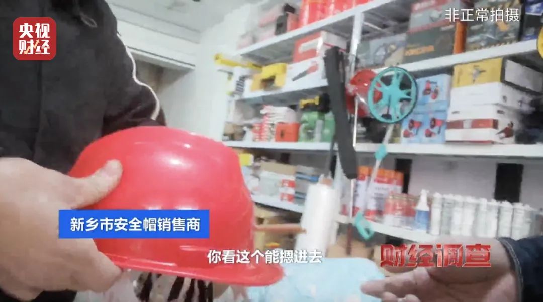 在山东临沂的大型劳保用品批发市场,还有的商家拿出了塑料安全帽,价格不到2.5元一顶。