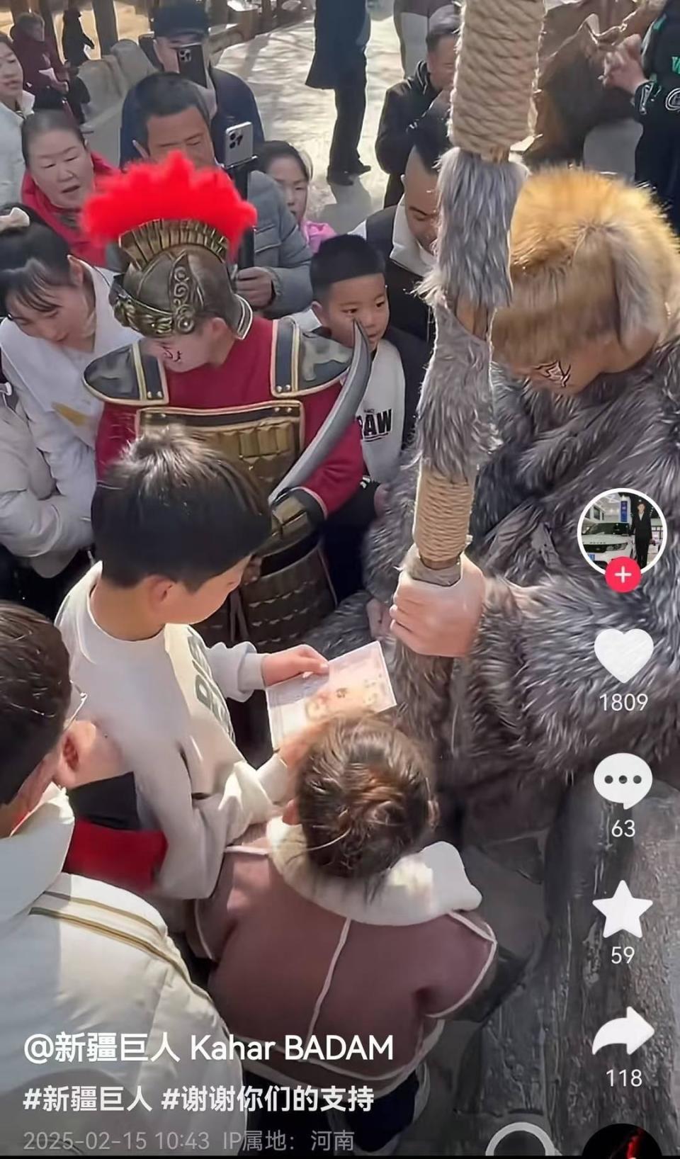 春节期间,河南开封万岁山景区,身高2米33的“巨人”演员阿卜杜卡哈尔·赛麦提走红网络,吸引不少游客慕名而来。