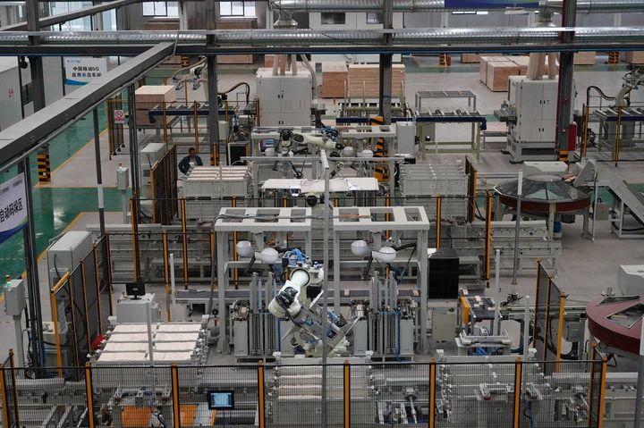 工作人员在屏幕上轻触按键,机械臂运转起来,将一块块木板送上传输轮,切割、封边、打孔、分拣、包装……在赣州市南康区A家家居产业园基地,两条长260米的机械化、智能化生产线高效运转,正赶制发往全国各地的订单家具产品。“企业2024年4月投产,如今日均产量已达2.6万块板材,平均15分钟就能生产一套橱柜。”A家家居董事长助理梁志江说。