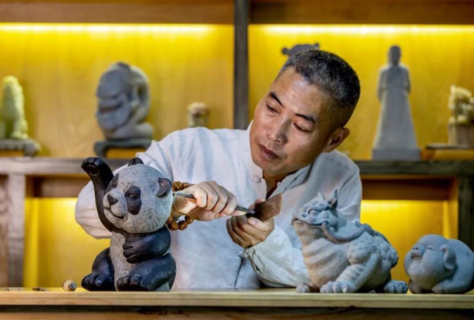 为此,他不仅坚持免费举办中小学生石雕培训、讲座,还出资建设了集参观、展览、创作、体验于一体的钟山石雕工坊。