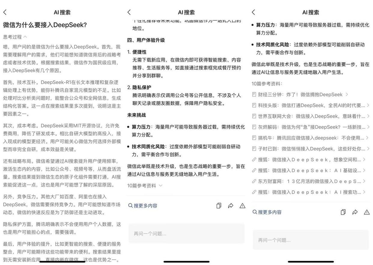近日,多名网友发现,微信搜索上线“AI搜索”功能,正接入DeepSeek-R1模型。