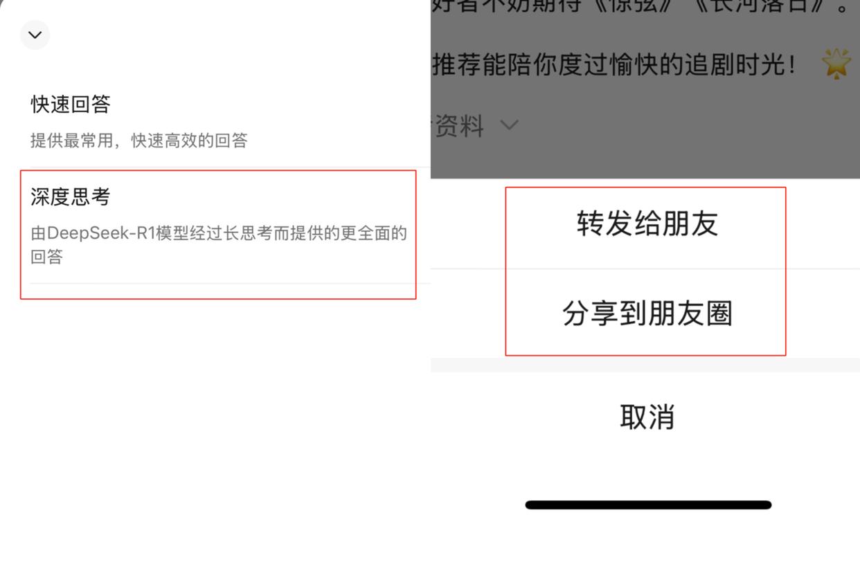 实测过程中,林同学以“微信为什么要接入DeepSeek”提问,回答引用的内容包含微信公众号文章、网页消息等,而且答案可一键转给朋友和分享到朋友圈。但当前版本尚不支持连续对话等功能。