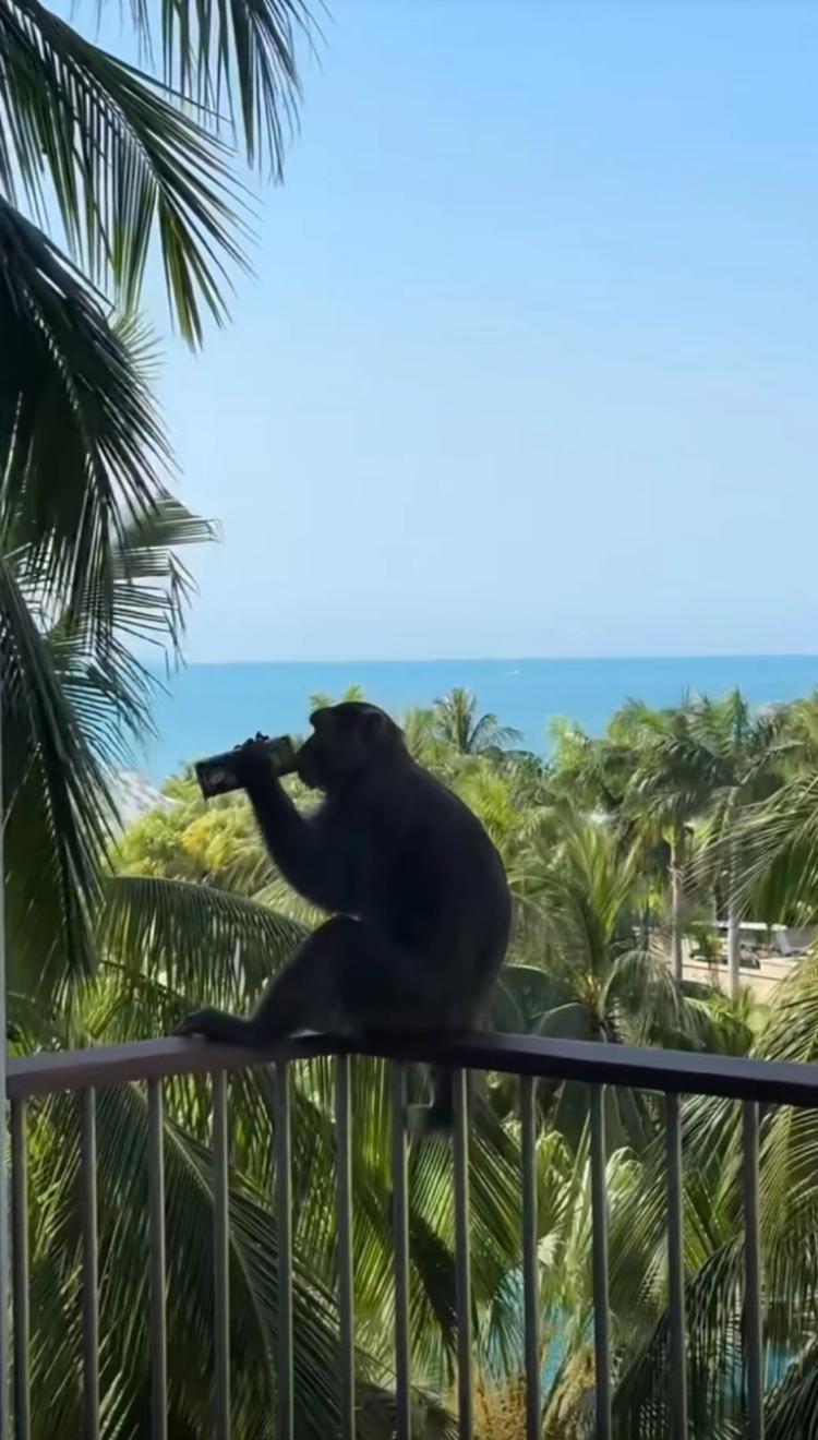 据发帖人介绍,她当时打开椰汁喝了一口,随后去了厕所,结果从厕所出来的时候就看到了这只猴子。视频是她老公拍摄的,两人当时不敢动,第一时间给酒店前台打了电话。后来在等待工作人员的过程中,拍下了这些视频。视频显示,这只猴子先是坐在椅子上,高举着椰子喝椰子水,然后拿着椰汁坐在阳台栏杆上畅饮,身后是茂密的椰林和蔚蓝的大海,不少网友留言表示,“感觉还挺有意境”“它看上去好惬意”“说明酒店环境挺不错的”……