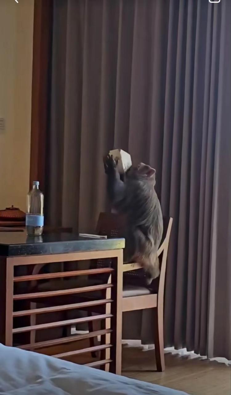 记者尝试通过私信联系该网友,但未获回应。另外一名网友告诉记者,她去年9月入住三亚文华东方酒店的时候,也碰上了一只猴子闯入自己房间,但不知道是否为同一只。她发布的照片显示,一只猴子正坐在客厅茶几上,开心享用着葡萄等水果,“当时它把我的水果和甜品都吃完了,还好吃完就走了。”记者搜索社交平台发现,早在2021年2月,就有游客表示自己在该酒店遭遇了猴子进入房间的情况。