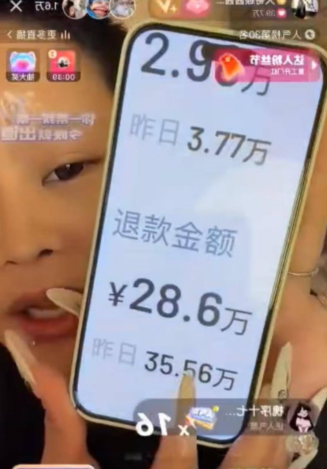 在一段直播切片中,顾茜茜说,一天100万元左右的成交额里,约有30万元的商品会被退款,展示的金额还是税前的。
