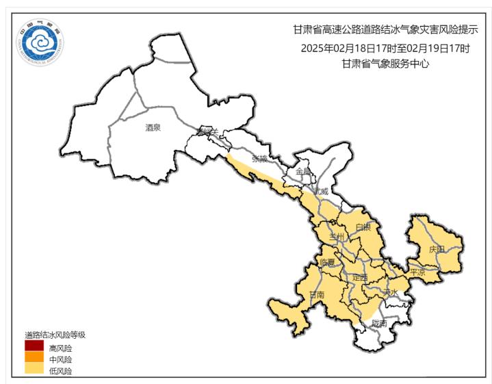 甘肃省公路道路结冰风险预警提示