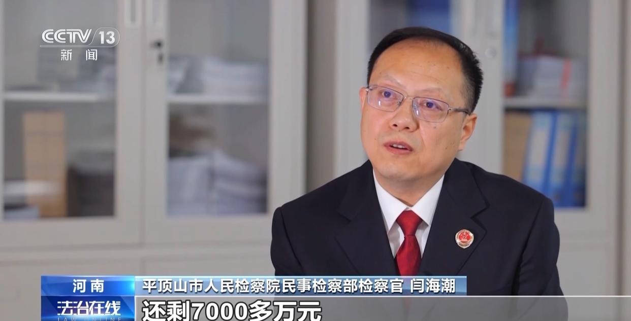 平顶山市人民检察院民事检察部检察官 闫海潮:执行款我们经过查证。1893万元中,至少有1700多万元都回流到刚才说的法定代表人江苏这家法定代表人的儿子的账户里了。
