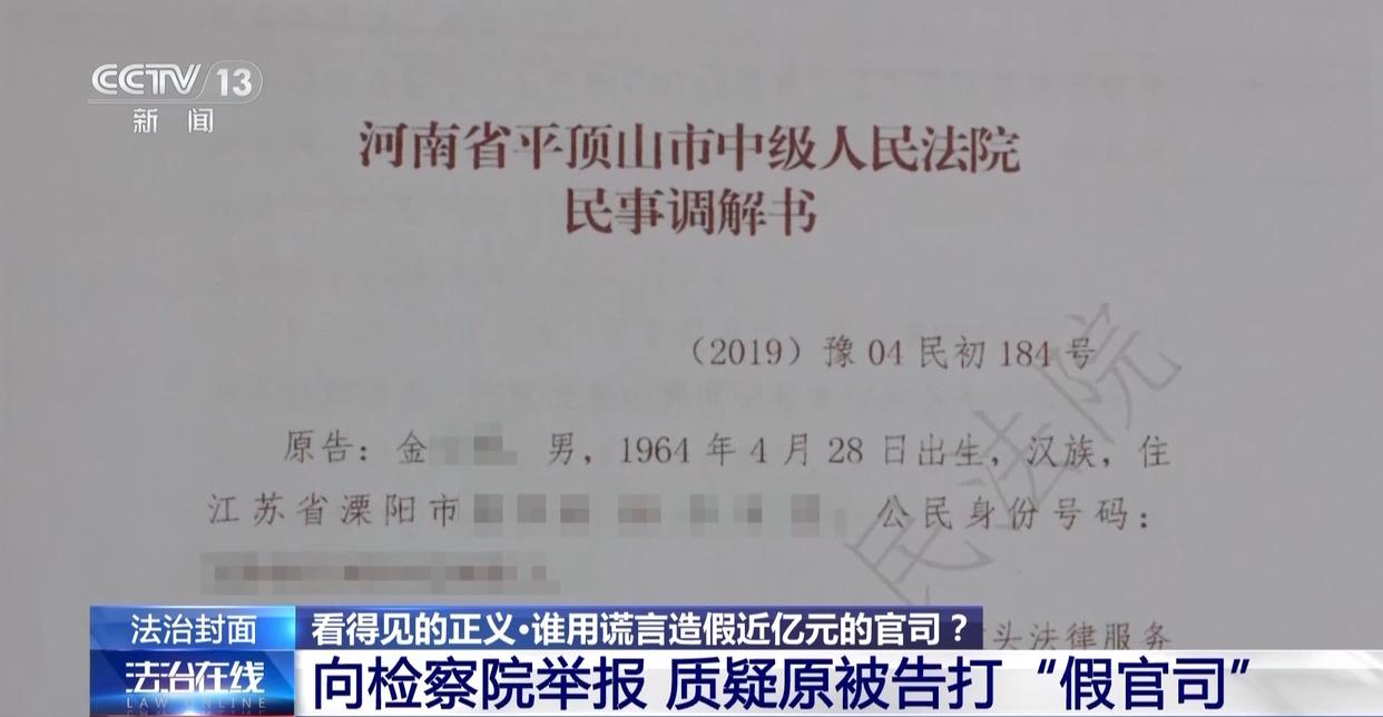 在江先生眼中,金某诉江苏某建设公司的官司疑点重重,但这起民事诉讼的结果,已经由原被告协商同意,白纸黑字地写在民事调解书上了,具备法律效力,并不是随随便便的怀疑就能推翻,在律师的建议下,江先生写信向平顶山市人民检察院举报了相关线索,他怀疑那场近1亿元标的的民事官司是“假官司”。