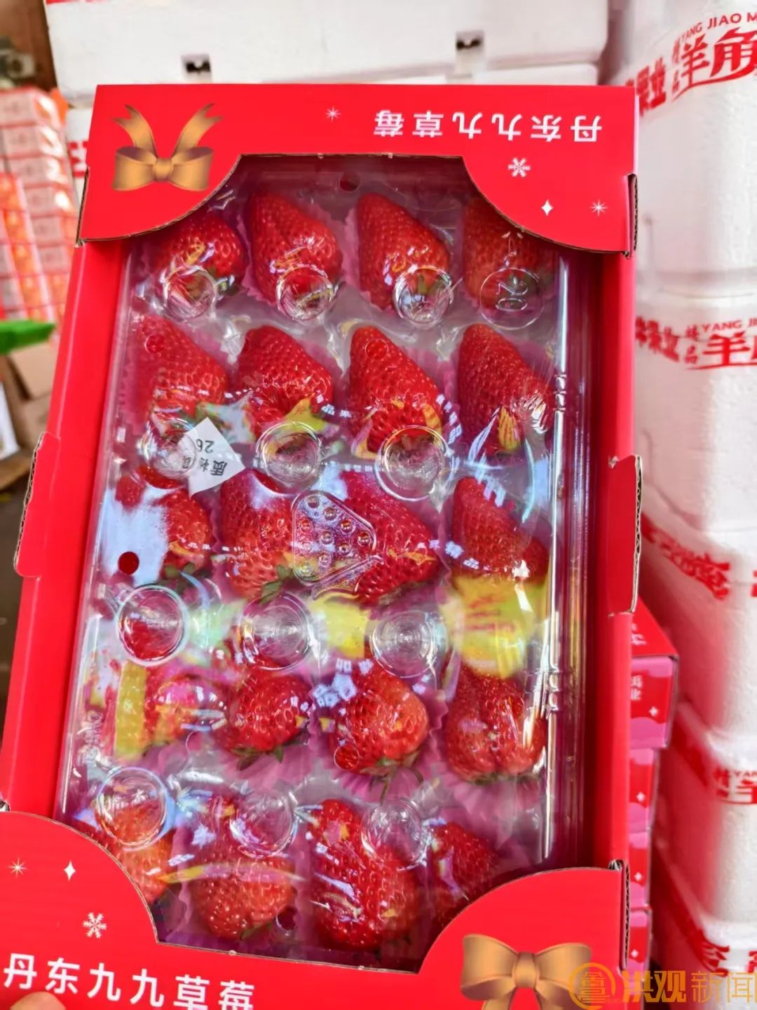 红彤彤的草莓成箱售卖