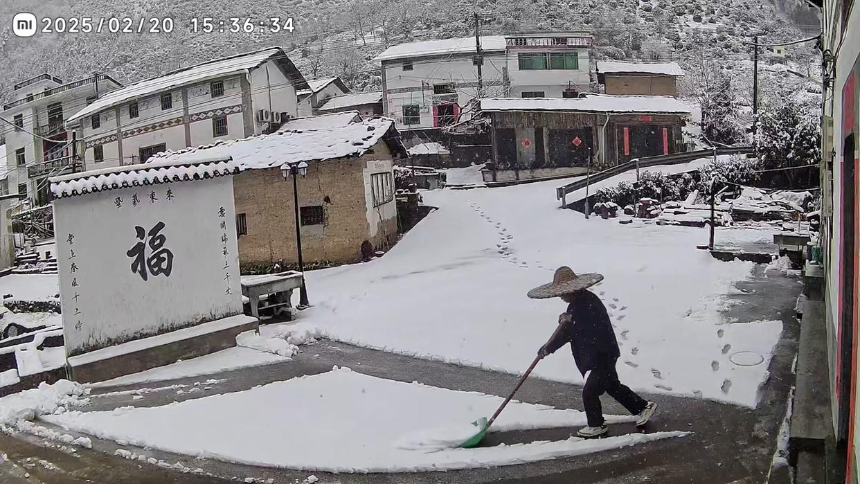 “山顶积雪已达10厘米厚,海拔稍低一些的村庄道路上也有8厘米左右的积雪。”金陵村党支部书记项家龙告诉记者,目前道路没有结冰,今天晚上要重点巡逻查看路面结冰情况,及时采取措施。