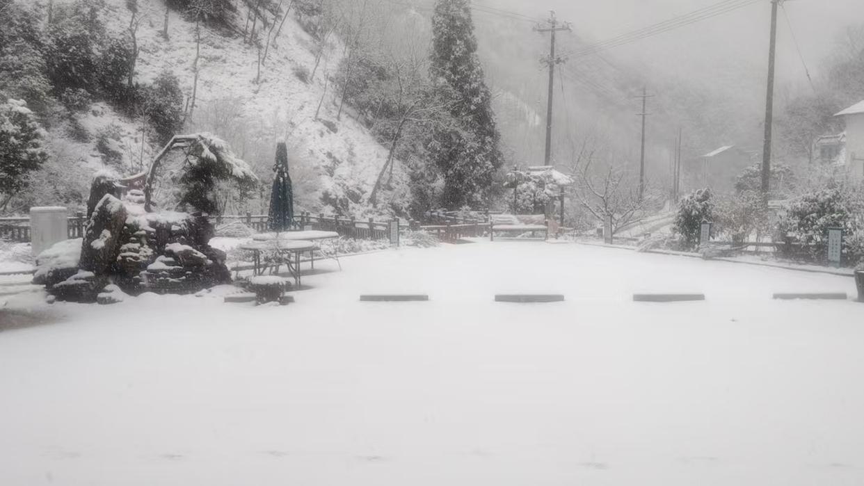 淳安县屏门乡金陵村也在下午再次飘起了雪花,临近的瑶山乡天坪村同样开始下雪,两村各海拔位置出现不同程度的积雪。