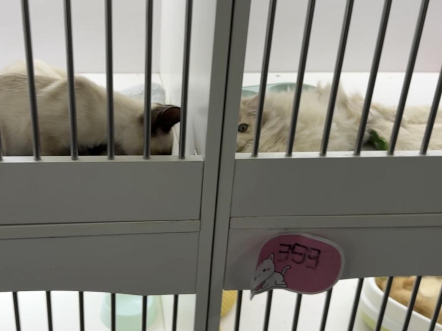 “猫咪免费领养馆”内,右下角贴纸上是“领养”价格。