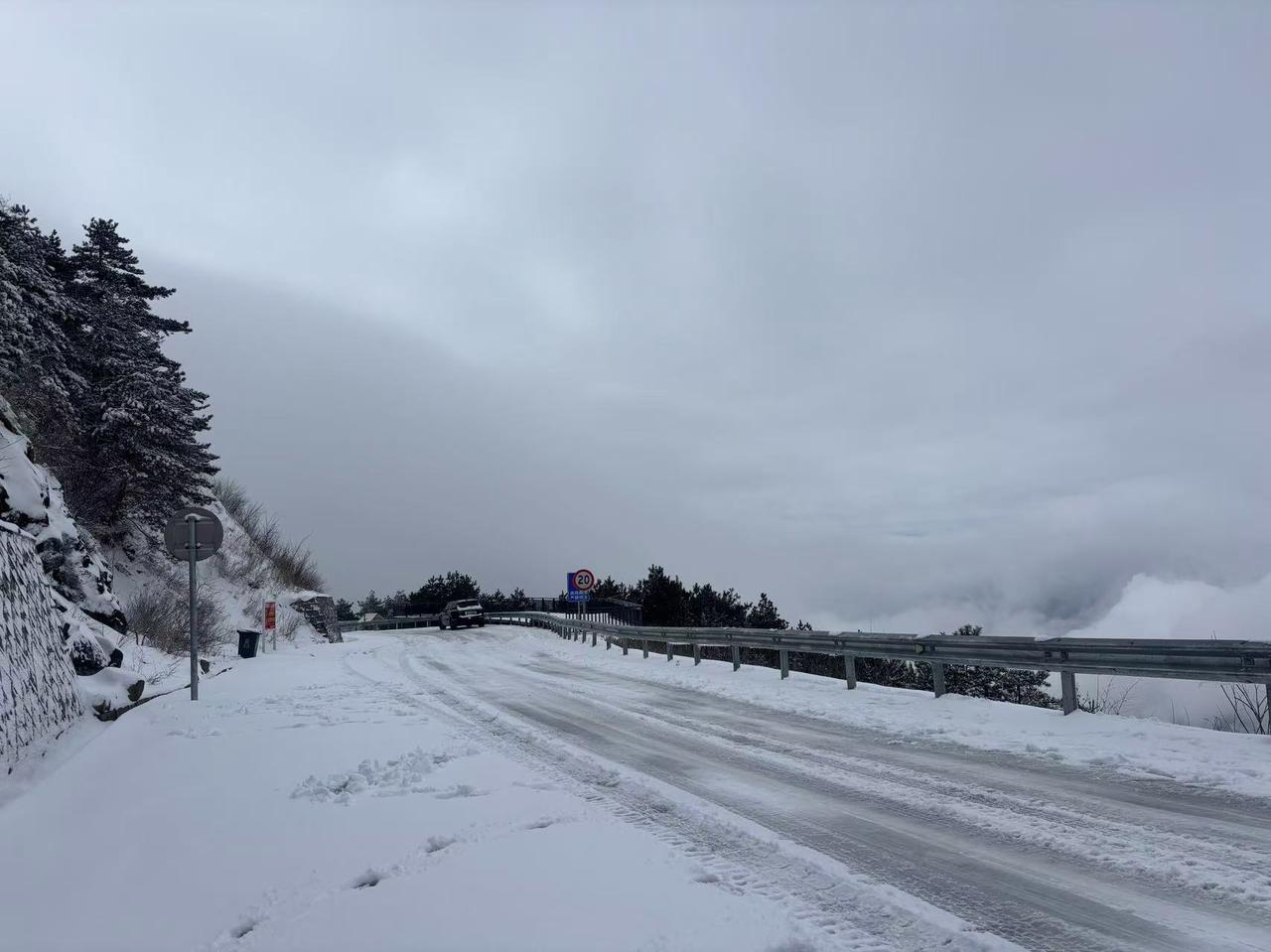 “昨天下午开始,雪比较大,上山道路临时封控了,到现在还没解封。”陈先生告诉记者,太子尖积雪已有十几厘米厚,有的地方甚至达到20厘米。由于温度低,山路结了厚厚的冰。
