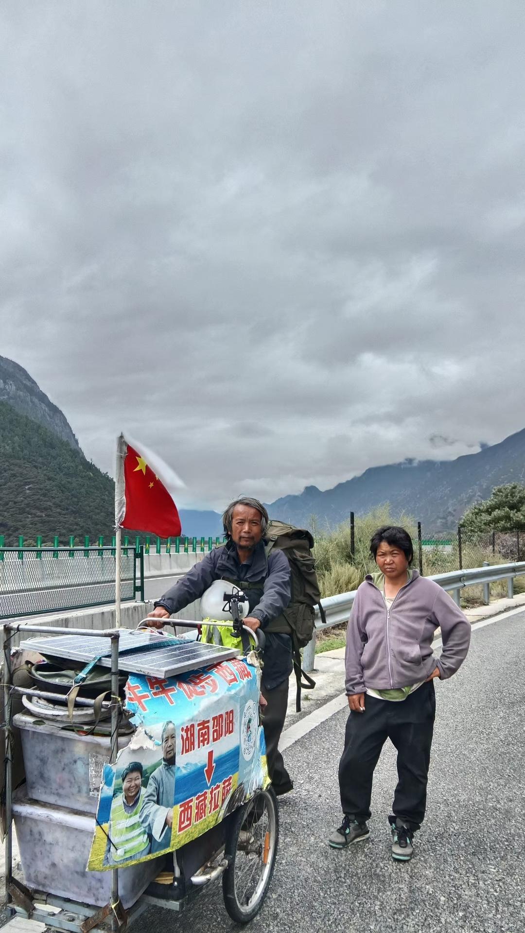 今年1月13日,杨同牛夫妇从西藏回到了新邵县老家,前后徒步约10个月,往返6000多公里(实际徒步5000多公里),总共花费8万多元,其中他自己掏了5.8万元,其他是“大哥大姐”打赏和广告分成。