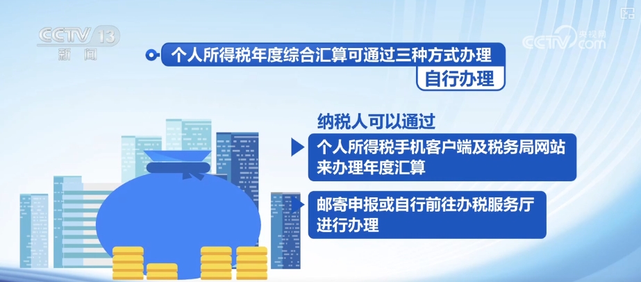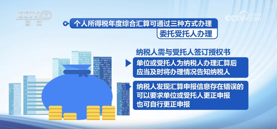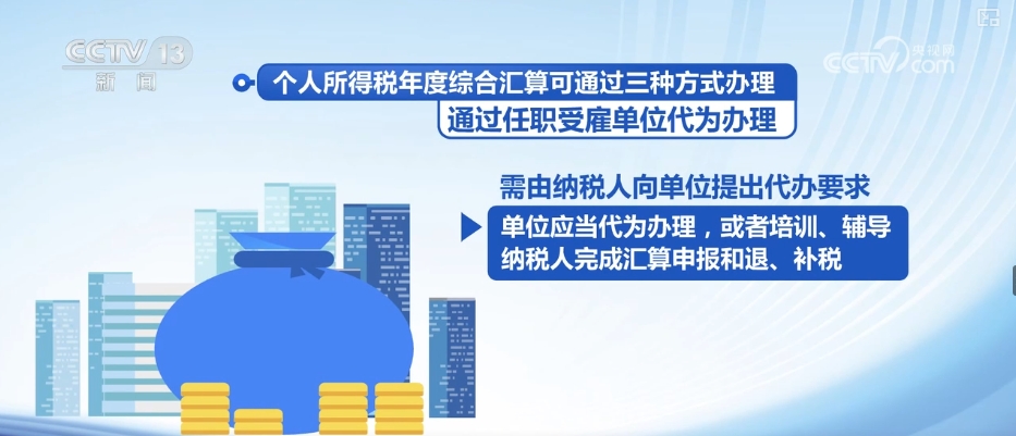 据介绍,个人所得税年度综合汇算可通过自行办理、通过任职受雇单位代为办理、委托受托人办理三种方式。
